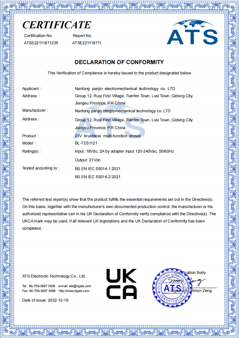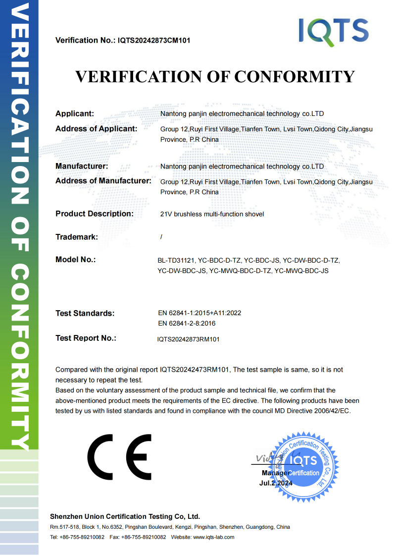 Nantong Panjin Electromechanical Technology Co., Ltd. has been exporting cordless power tools for eight years and is a trusted partner for global buyers seeking reliable tools. Our core products include electric drills, impact wrenches, garden tools, and rivet guns, all certified to CE, FCC, and ISO standards.